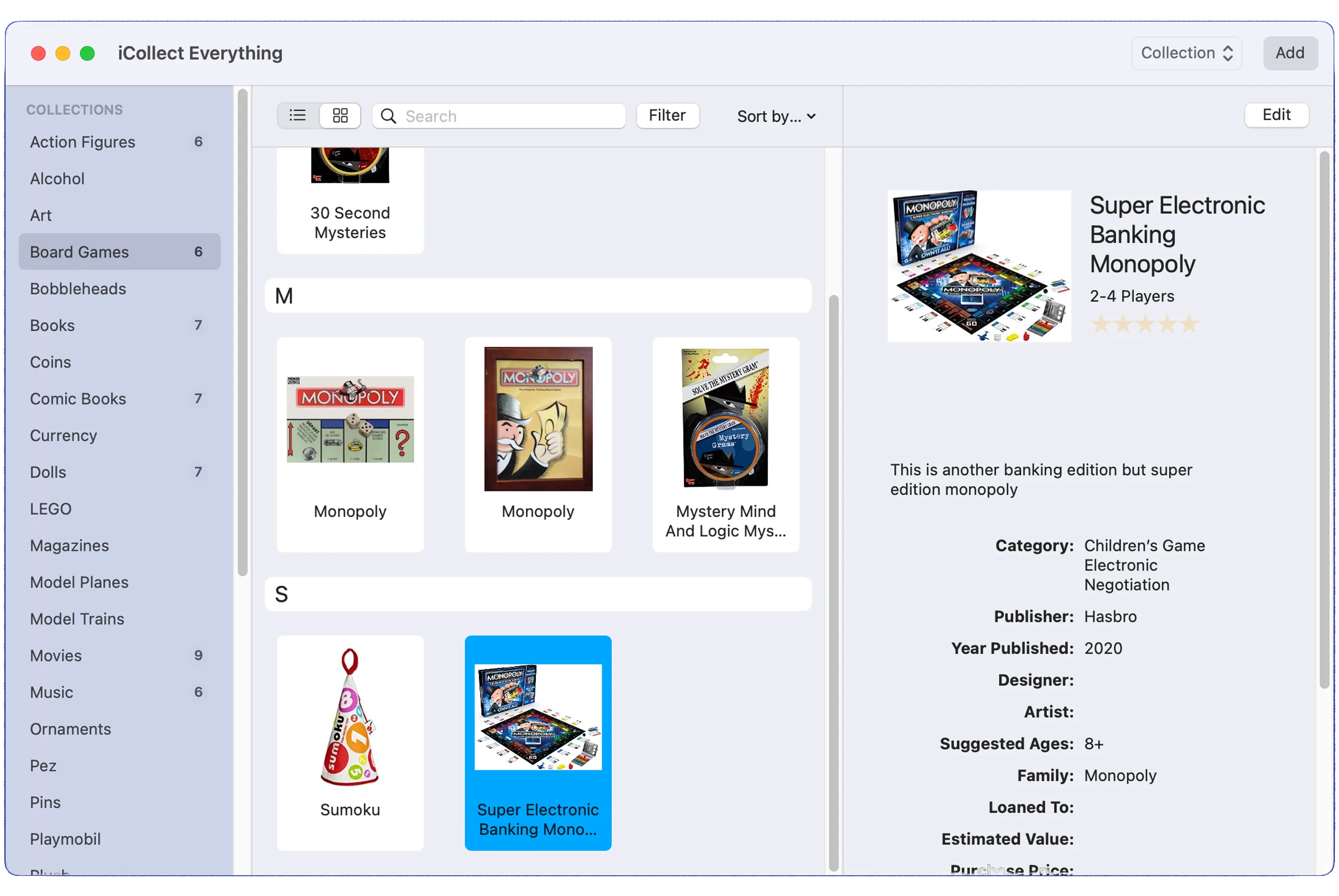 Use iCollect Everything on the go, whether with an iPhone, iPad, or Android. Then use iCollect Everything when you get home on a large desktop screen with a keyboard for quicker input and modifications of your board game data. And then share your board games and wishlist with friends and family using our web sharing option.